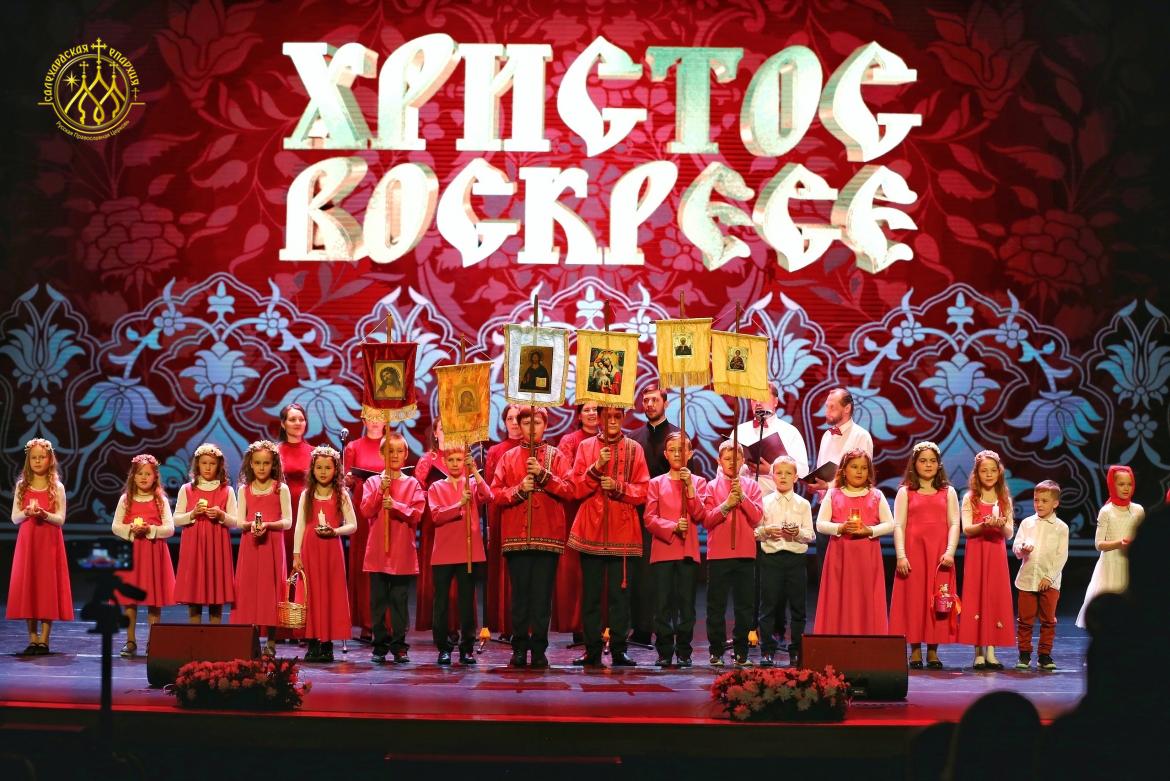 В окружной столице, как всегда, с большим успехом и зрительским восторгом прошел очередной Пасхальныйконцерт, подготовленный силами учеников, педагогов и родителей Воскресной школы. Мероприятие состоялось на большой сцене КДЦ.