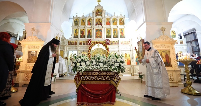 В этом году в окружной столице были организованы две торжественные службы. В Петропавловском храме настоятель храма протоиерей Алексий Мартынов возглавил праздничное Пасхальное богослужение, в сослужении духовенства прихода. После крестного хода, который прошел по территории храма, священнослужители совершили Пасхальную Утреню и Божественную литургию.