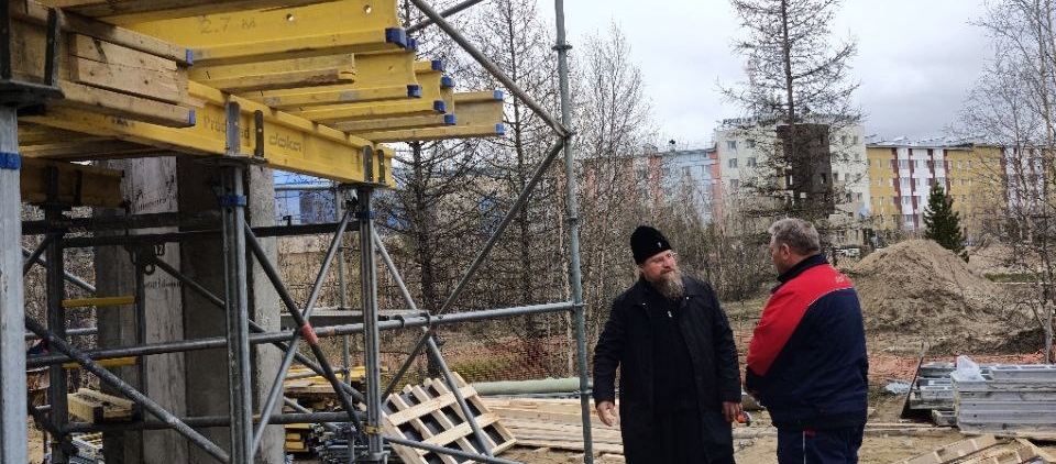 Владыка посетил строительный объект: на территории городской больницы возводится храм в честь святителя Луки Крымского. Архиепископ Николай обсудил с прорабом и строителями рабочие моменты, вместе прошлись по стройке, наметили конструктивные планы по дальнейшему возведению храма.