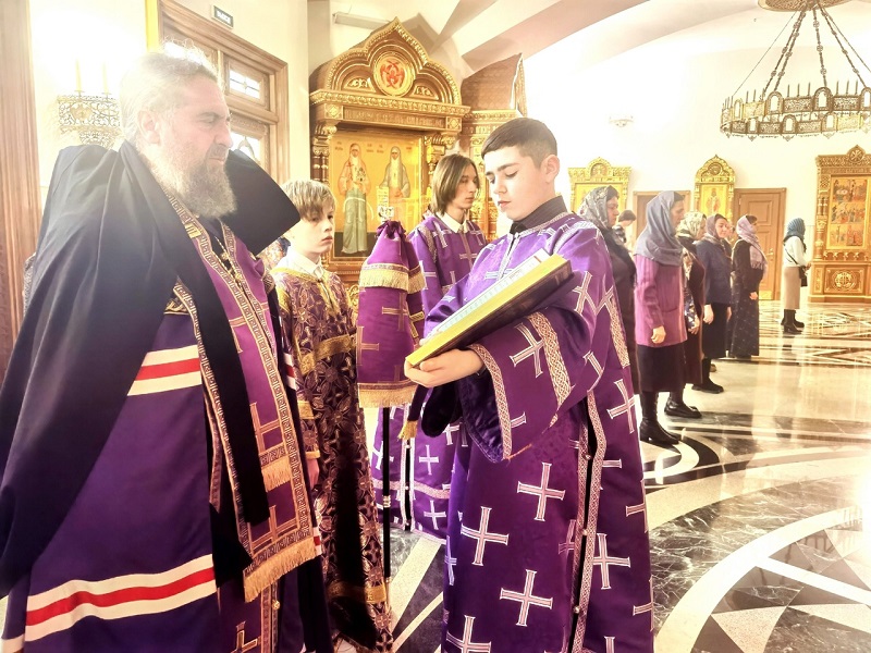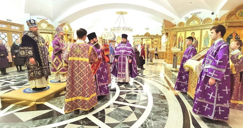 30 марта Русская Православная Церковь чтит память преподобного Алексея, человека Божия, а также это 4-я неделя Великого поста – день памяти преподобного Иоанна Лествичника. В этот день в нижнем храме в честь Покрова Пресвятой Богородицы кафедрального Преображенского собора была совершена Божественная литургия архиепископом Николаем, Салехардским и Ново-Уренгойским, и епископом Феодосием, Ноябрьским. Владыкам сослужило духовенство собора.