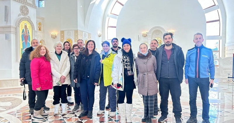 Одним из первых мест посещения гостей Салехарда стал кафедральный Преображенский собор. Их впечатлил масштаб и величие храма. Елена Казанцева, экскурсовод кафедрального комплекса, рассказала об особенностях храмостроения в Заполярье и о святынях, которые находятся в храме. Далее группа посетила музей становления Православия на Ямале при Салехардской епархии. Во время экскурсии гости из Греции узнали о Мангазее, о том, как на этой земле развивалась Православная вера, увидели макеты храмов и через фотографии погрузились в историческое путешествие.