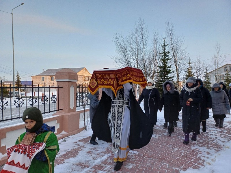 В храме во имя святой блаженной Ксении Петербуржской в селе Яр-Сале иерей Иоанн Шишлянников, настоятель храма, совершил вечернее богослужение с чинопоследованием выноса и погребения Святой Плащаницы Спасителя. Это богослужение – важная часть Страстной недели, символизирующая скорбь о распятии Христа.