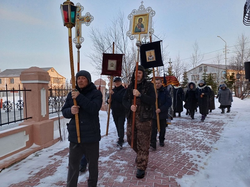В завершении священник совершил крестный ход по территории храма, в котором приняли участие прихожане, выражая свою веру и преданность. Крестный ход — это древняя традиция, символизирующая единство верующих и их молитвенное обращение к Богу.