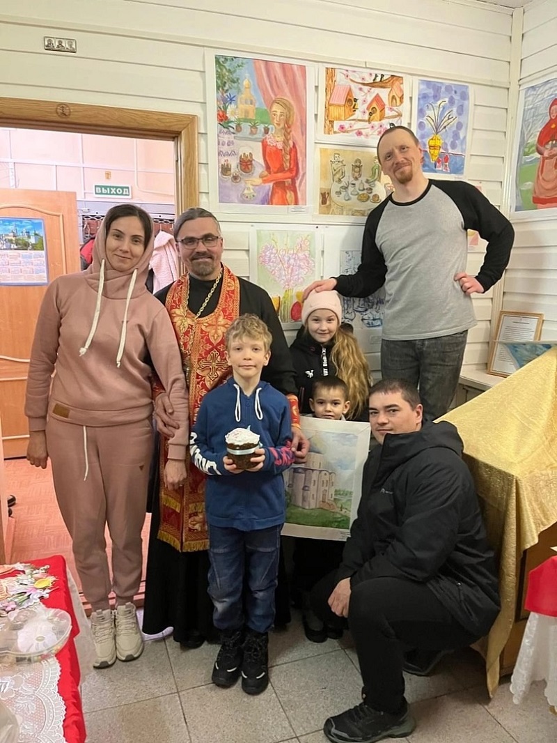 Сегодня после утреннего богослужения настоятель Благовещенского храма иерей Андрей Кряклин помолился вместе с прихожанами района Лимбяяха. В помещении, приспобленном под храм, совершили молебны и освятили пасхальную снедь. Прихожане организовали выставку рисунков к празднику Пасхи.