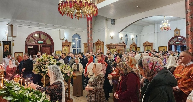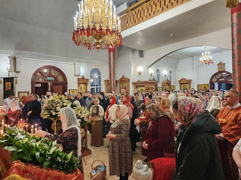 Праздник Святой Пасхи торжественно отпраздновали на Архиерейском подворье прп. Серафима Саровского г. Новый Уренгой. Ночью в храме были отслужены Пасхальная Заутреня и Божественная Литургия. Утром была совершена поздняя литургия. Христос воскресе!