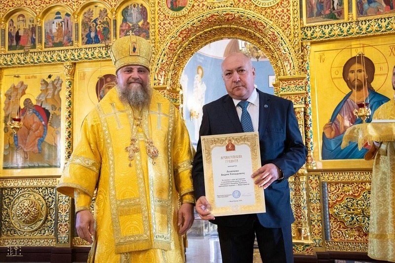 За помощь и внимание к православной церкви генеральный директор Севернефтегазпром Владимир Дмитрук награжден медалью «За усердие и труды во славу Святой Церкви».