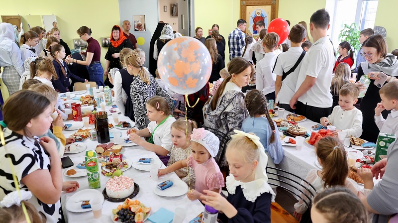 После церемонии учащихся ждало угощение в трапезной: чай с тортами, арбузом и другими вкусностями. В этот день не было обычных уроков — педагоги провели классные часы, на которых рассказали о планах и задачах на новый учебный год. Уроки обещают быть интересными, дружба станет еще крепче, а время, проведенное в Воскресной школе, принесет много полезных открытий.
