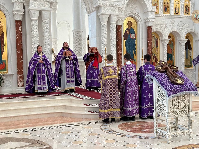 В этот день в кафедральном Преображенском соборе была совершена Божественная литургия, которую возглавил секретарь епархии протоиерей Алексий Мартынов в сослужении духовенства собора. После службы священник в своей проповеди уделил внимание значению Креста как символа спасения и веры, напоминая прихожанам о важности духовной жизни и необходимости следовать за Христом.