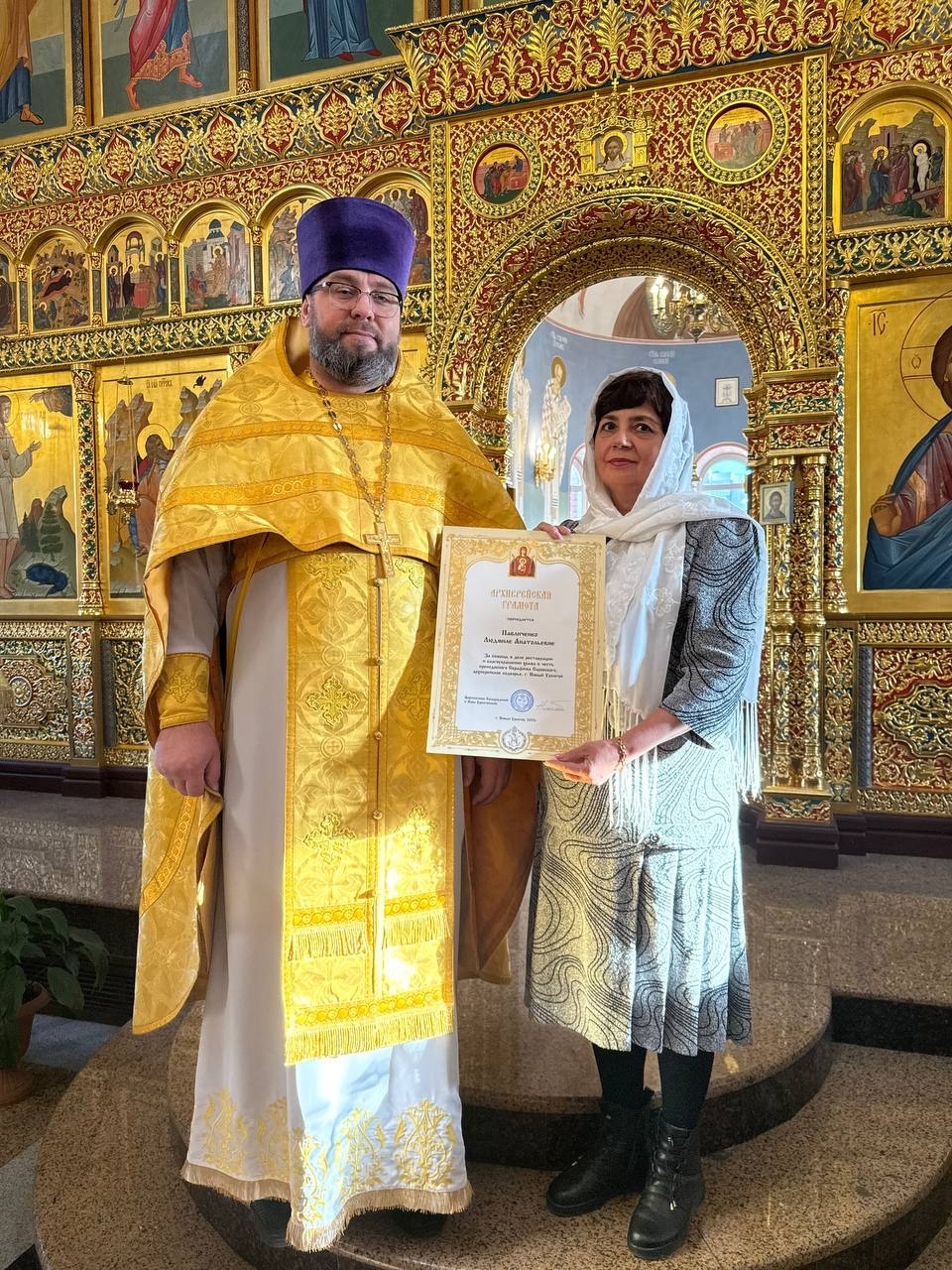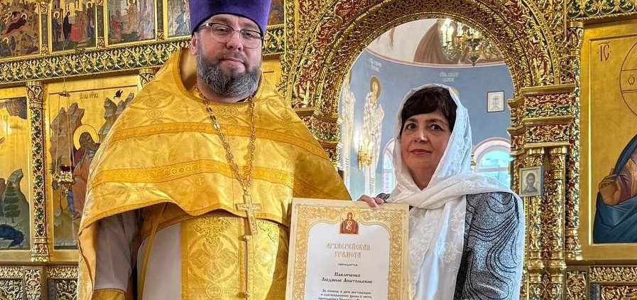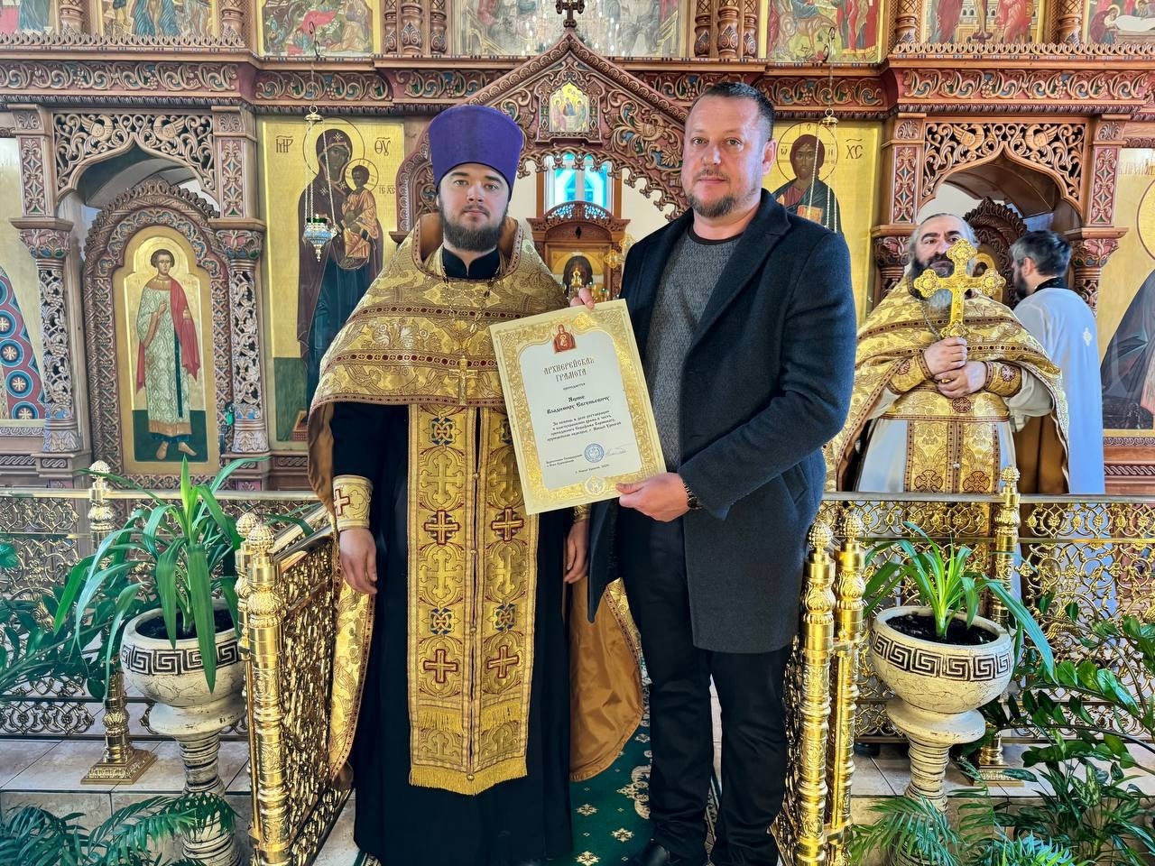 12 октября после совершения Божественой литургии в двух храма Нового Уренгоя состоялось награждение. В Богоявленском храме благочинный Новоуренгойского благочиния иерей Владислав Кошельник вручил архиерейскую грамоту Павличенко Людмиле Анатольевне, генеральному директору ООО «Сибнефтегазстрой», за помощь в деле реставрации и благоукрашении храма в честь преподобного Серафима Саровского, архиерейское подворье, г. Новый Уренгой. В храме преподобного Серафима Саровского архиерейской грамотой награжден Яцина Владимир Евгеньевич, генеральный директор ООО СЗ «Антарес». Грамоту за вклад в реставрацию и благоустройство храма в честь преподобного Серафима Саровского, вручил ключарь, иерей Сергий Мусиенко.