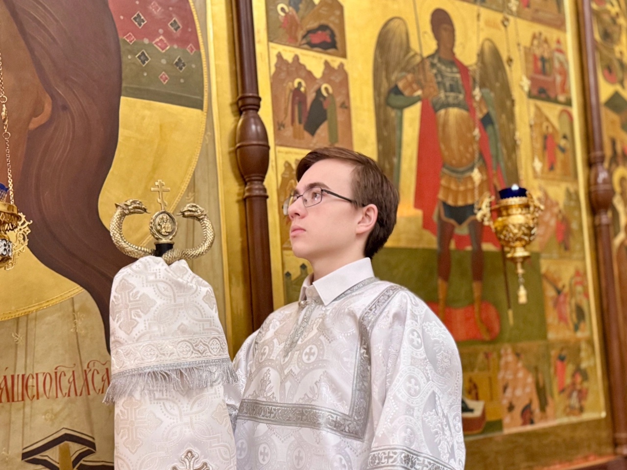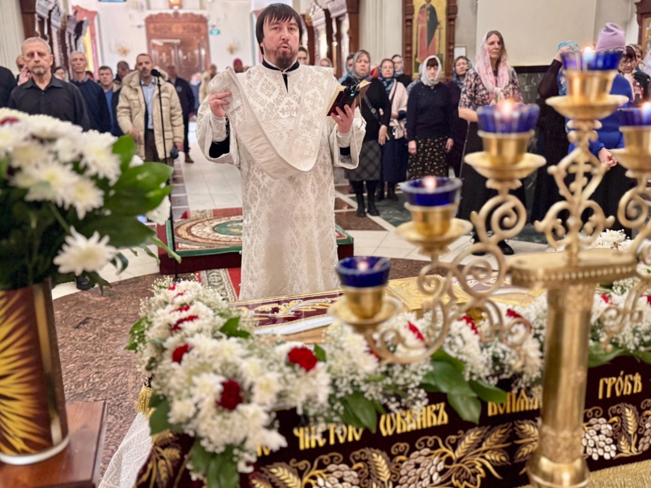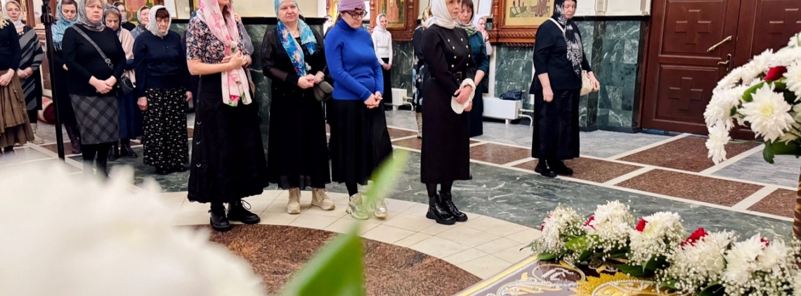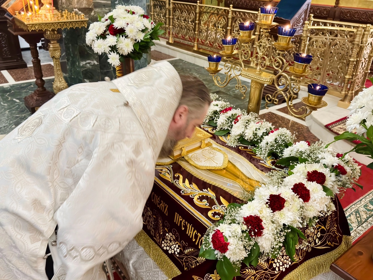 По заамвонной молитве владыка вместе со служащим духовенством совершил освящение хлеба и вина, после этого обратился к собравшимся в храме прихожанам с архипастырским словом, сугубо поздравил причастников с принятием святых Христовых Тайн и напомнил всем о значении сегодняшнего дня.