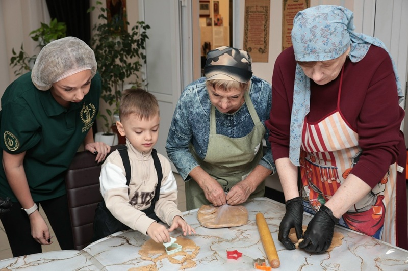 В трапезной Свято-Никольского храма царит атмосфера предновогоднего волшебства. Выпекаются ароматные имбирные пряники, которые станут сладким напоминанием о доме и близких. Пряники – лишь часть подарка, призванного поддержать боевой дух солдат. В каждый набор войдут также шоколадные конфеты, согревающий чай и открытка с искренними пожеланиями.
