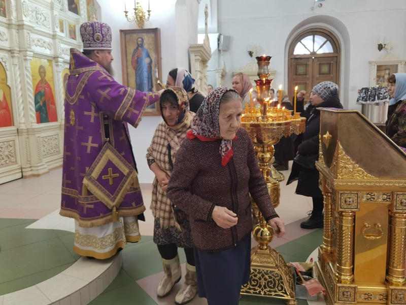28 февраля архиепископ Николай Салехардский и Ново‑Уренгойский совершил Божественную литургию святителя Иоанна Златоуста в Петропавловском храме Салехарда. Владыке сослужили священники прихода.