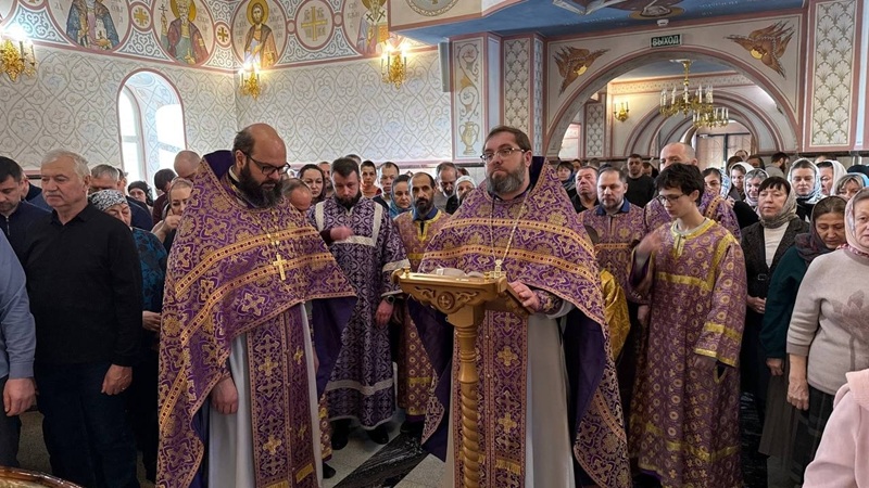 После воскресной Божественной литургии в Богоявленском соборе состоялся Чин Торжества Православия. Это молебное пение традиционно звучит в храмах Русской Православной Церкви в первое воскресенье Великого поста. Чин содержит в себе чтение Символа веры, произнесение анафемы и провозглашение многолетия и вечной памяти всем защитникам Православия. Божественную литургию соборно совершили настоятель иерей Владислав Кошельник и директор Филофеевской гимназии протоиерей Василий Корда.
