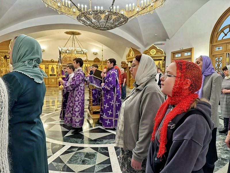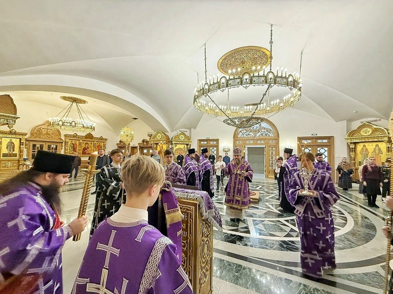 В этот день архиепископ Николай Салехардский и Ново‑Уренгойский возглавил Божественную литургию в кафедральном Преображенском соборе — в храме в честь Покрова Пресвятой Богородицы. Владыке сослужили священники собора. После отпуста духовенство совершило чинопоследование Торжества Православия.