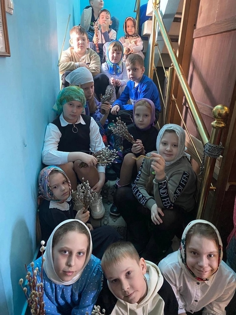 Многие верующие за Литургией приступили ко Святым Таинам, в том числе и воспитанники приходской Воскресной школы.