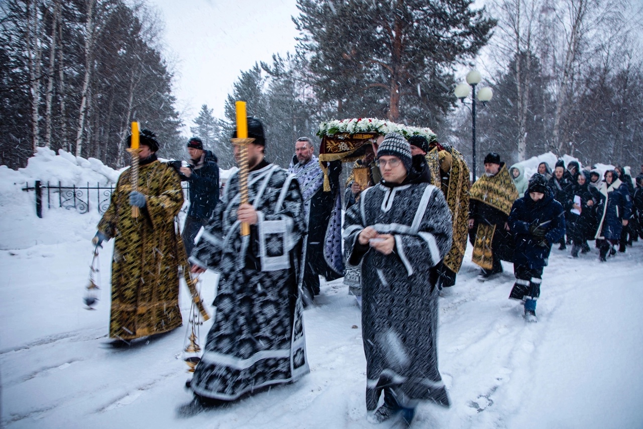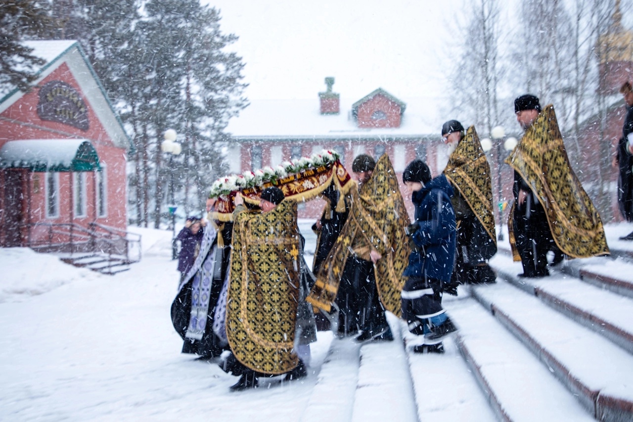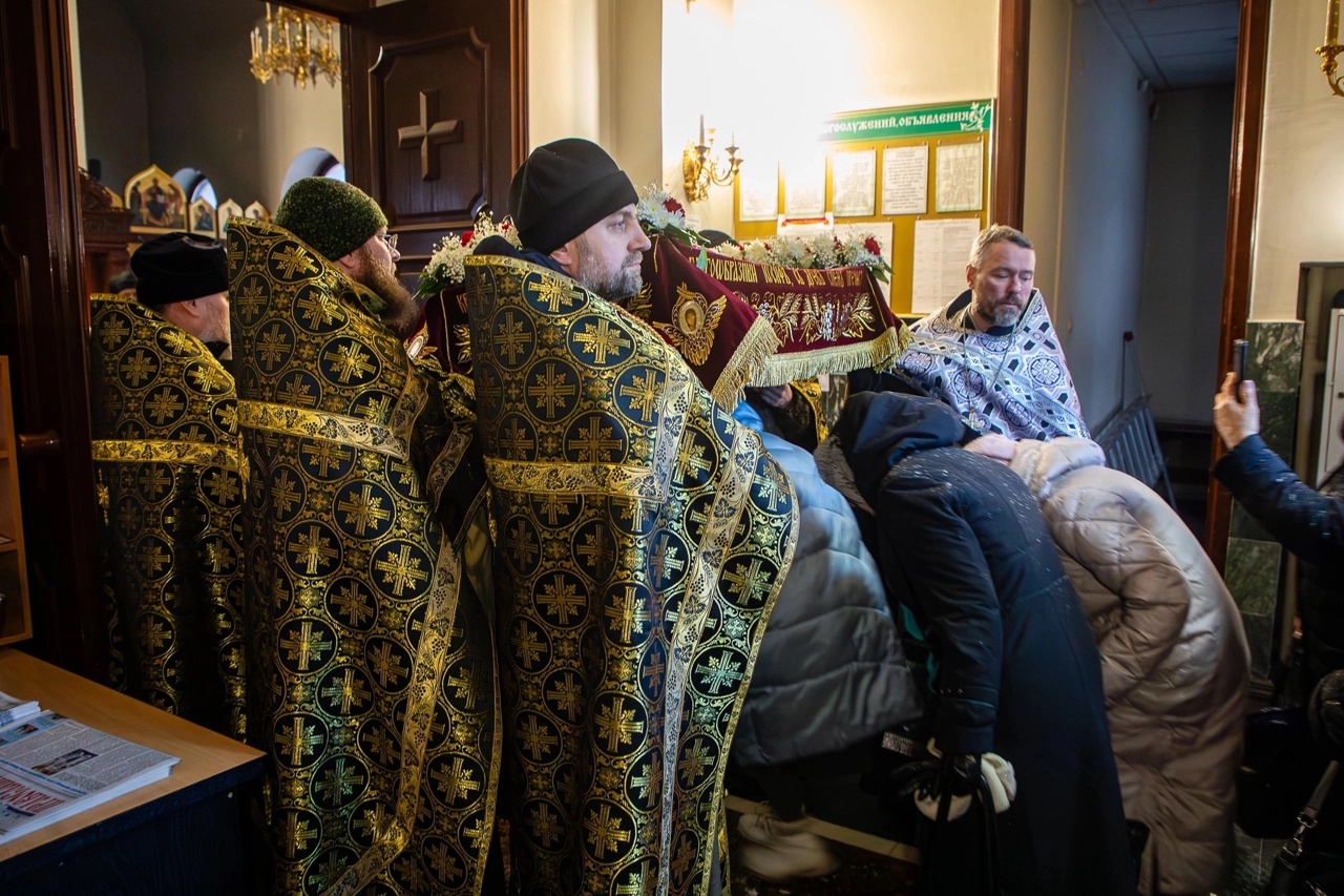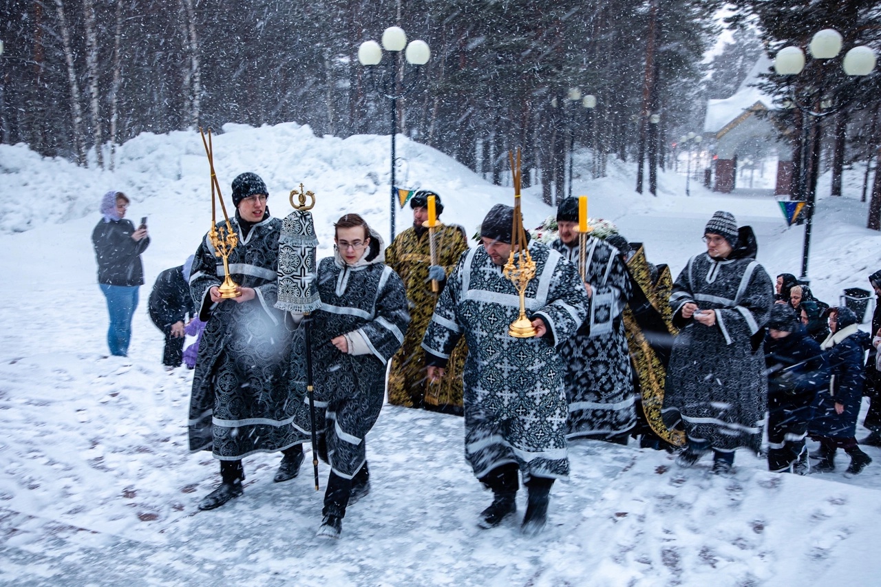 После великого славословия с пением погребального «Святый Боже» был совершен крестный ход с Плащаницей. Владыка Феодосий с братией, многочисленной молодёжью и прихожанами — прошли этот путь с усердной молитвой и благоговейно приложились к святой плащанице — важному символу веры.