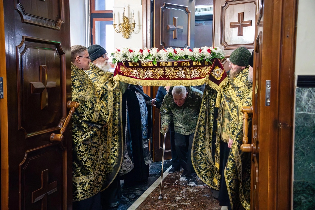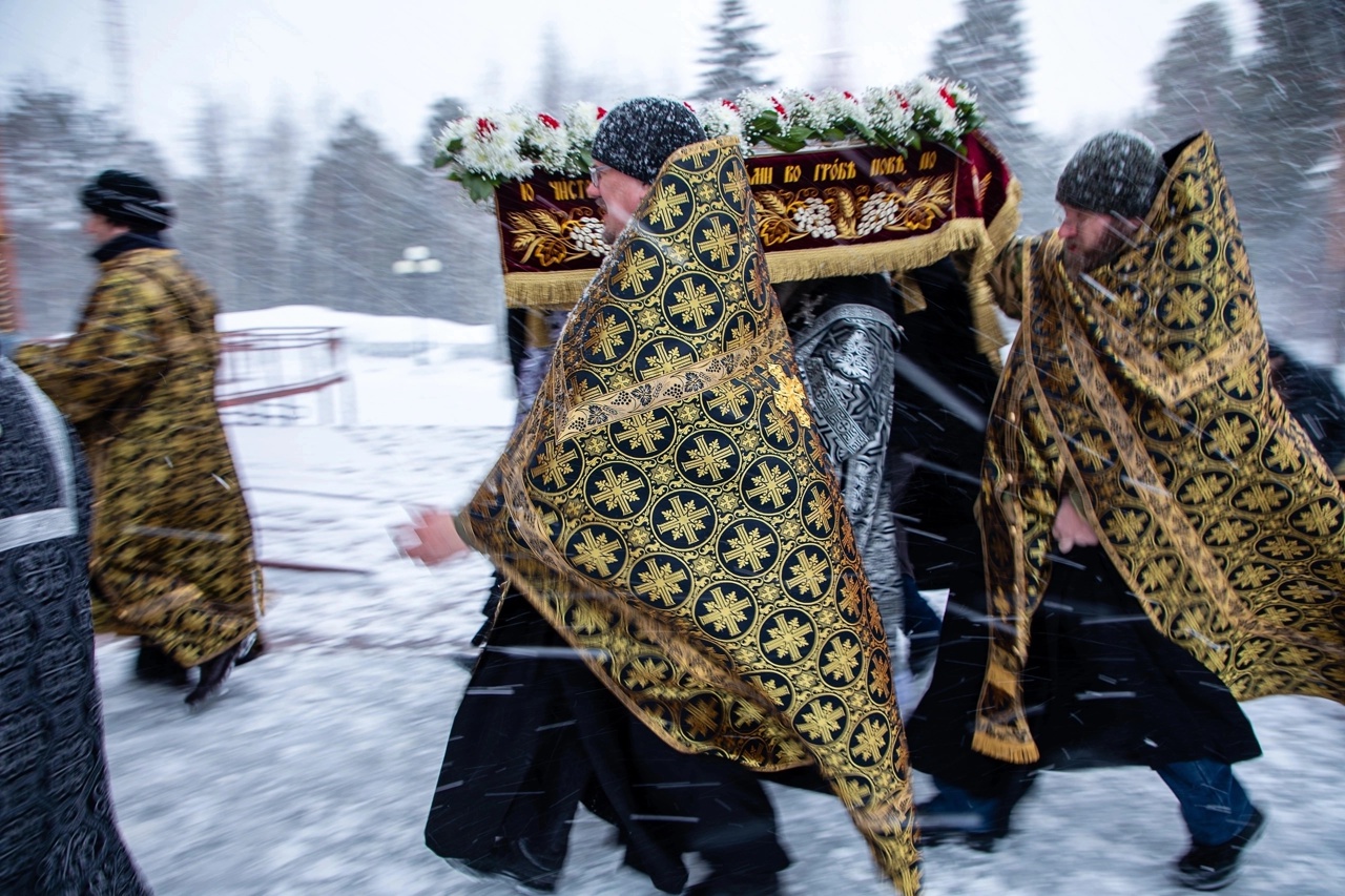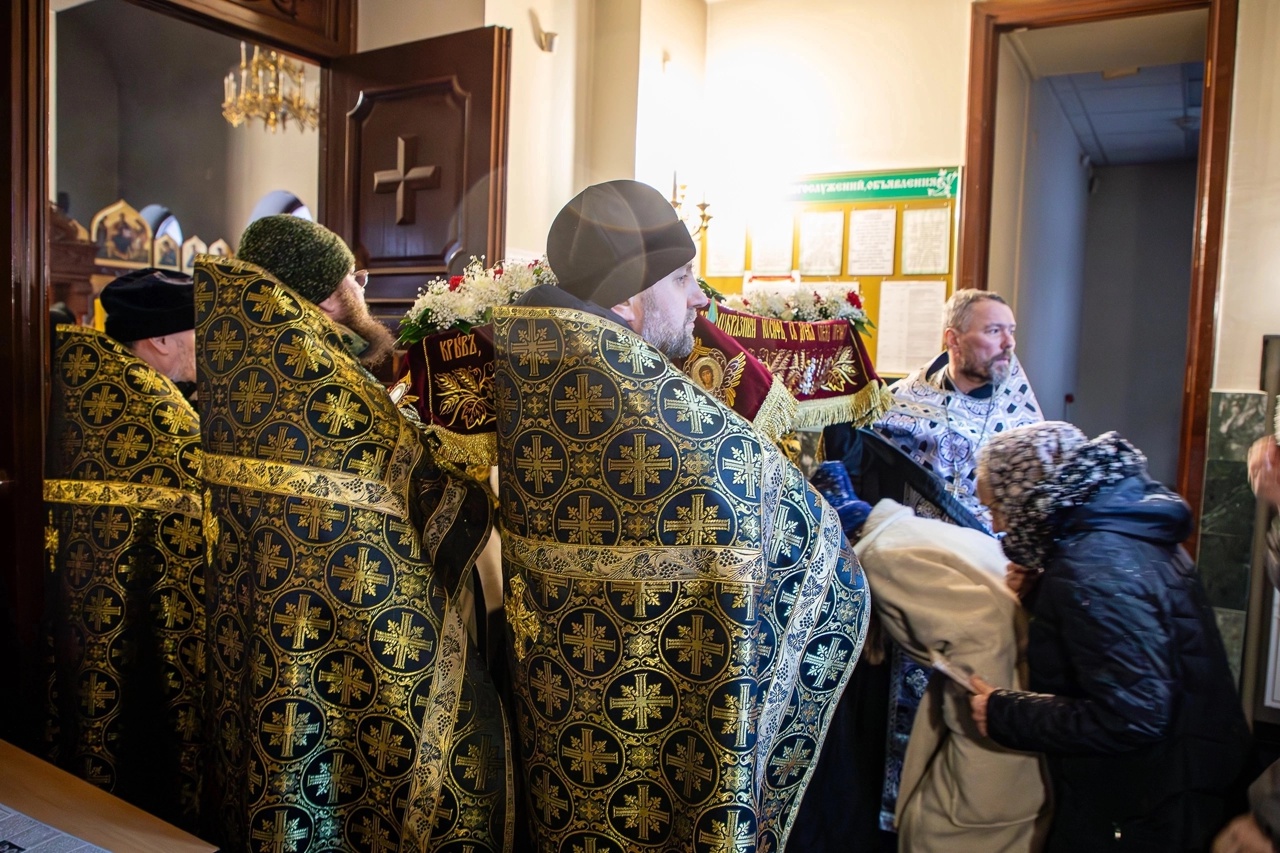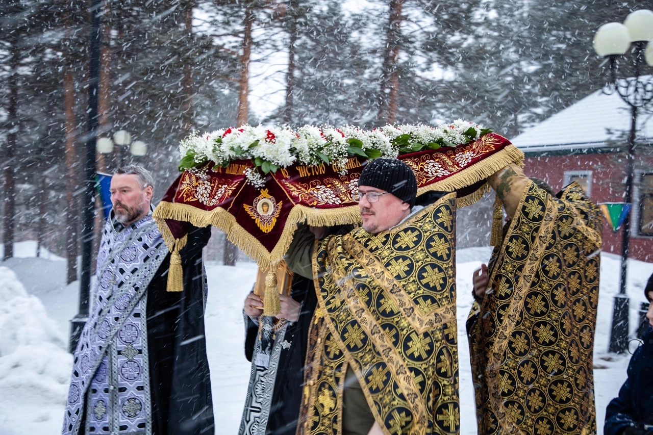 После великого славословия с пением погребального «Святый Боже» был совершен крестный ход с Плащаницей. Владыка Феодосий с братией, многочисленной молодёжью и прихожанами — прошли этот путь с усердной молитвой и благоговейно приложились к святой плащанице — важному символу веры.