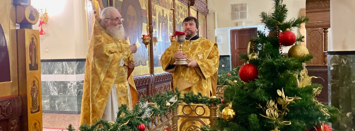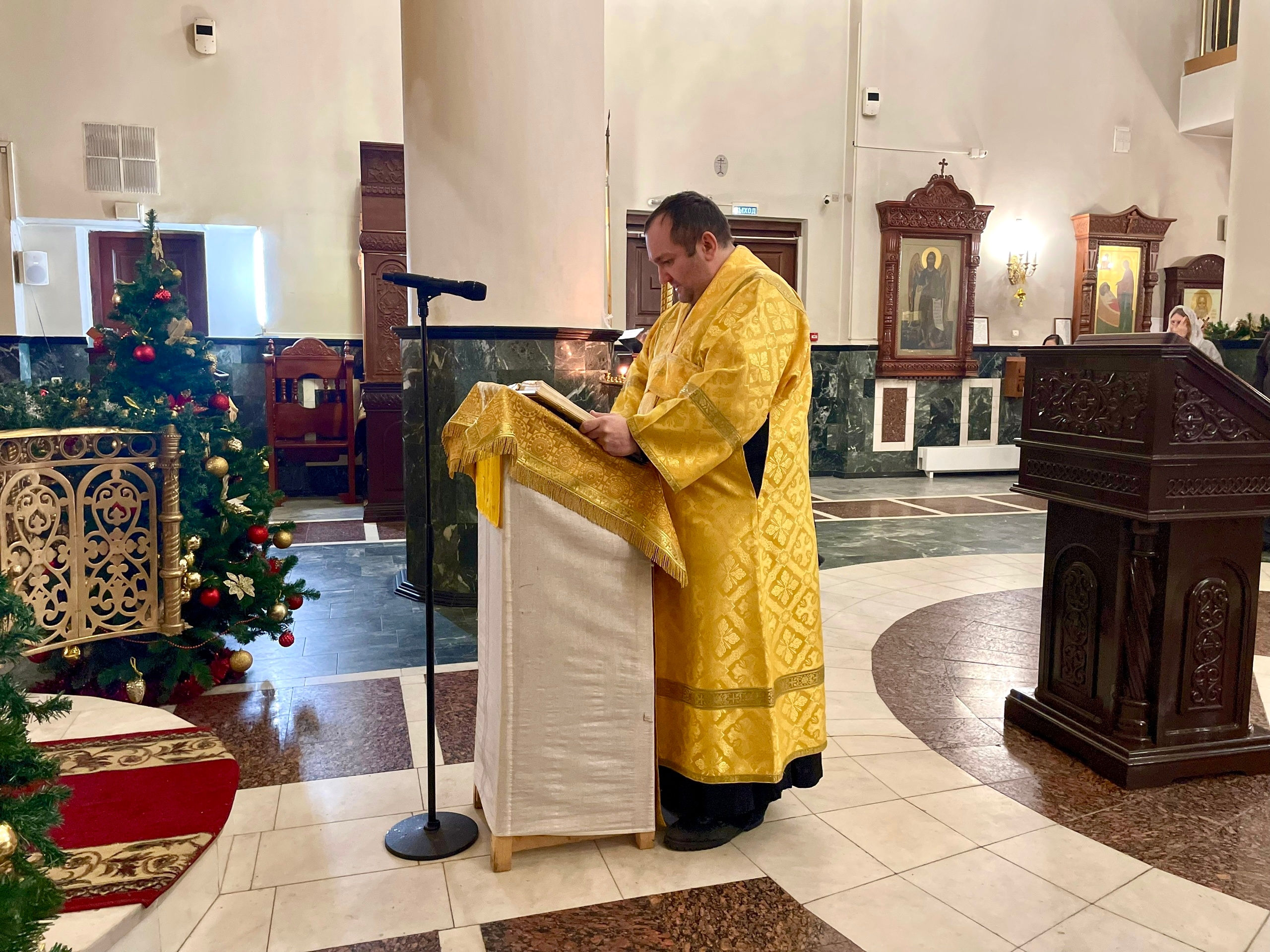 В новогоднюю ночь в Ноябрьске иерей Григорий Тиунов совершил Божественную литургию и молебен на новолетие.